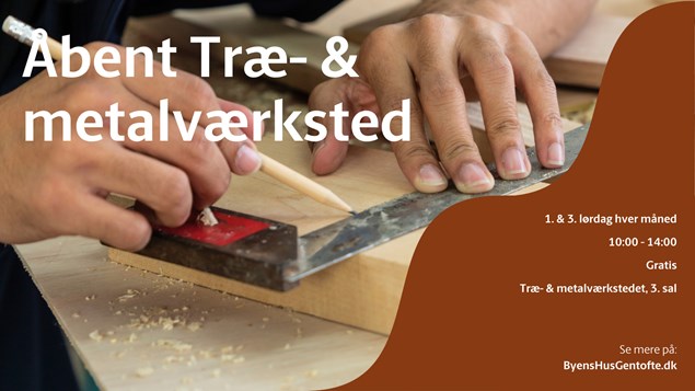 Kom og vær med til Åbent Træ- & Metalværksted i Byens Hus i Hellerup, hvor alle med interesse for håndværk kan bygge egne ting eller deltage i fælles projekter. Hver 1. og 3. lørdag i måneden fra kl. 10-14 er værkstedet åbent for alle.