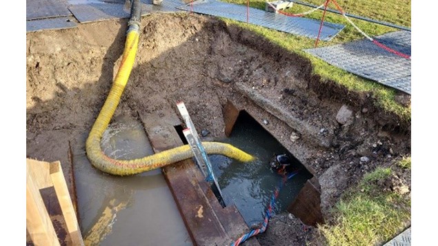 Til trods for udfordrende forhold med lav sigtbarhed på grund af slam og ophvirvlet materiale, har dykkere arbejdet utrætteligt. Dykkerne har brugt deres sanser til at føle sig frem og findes lækagen på ledningen.